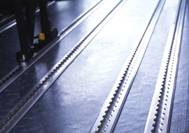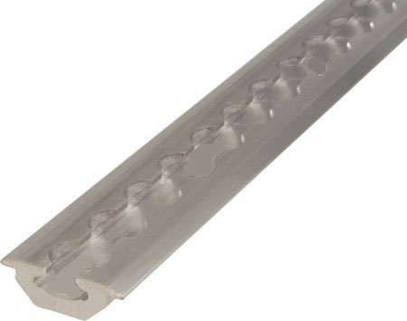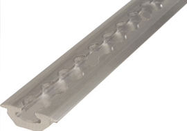 I binari Unwin sono prodotti in alluminio.Questo modello mantiene un'altezza sopra al pavimento di soli 3,5 millimetri. I bordi inclinati e accurate finiture evitano il rischio di inciampare.