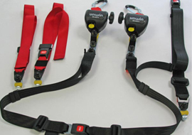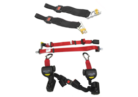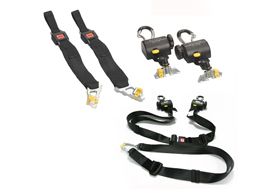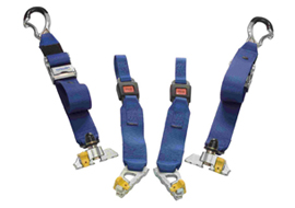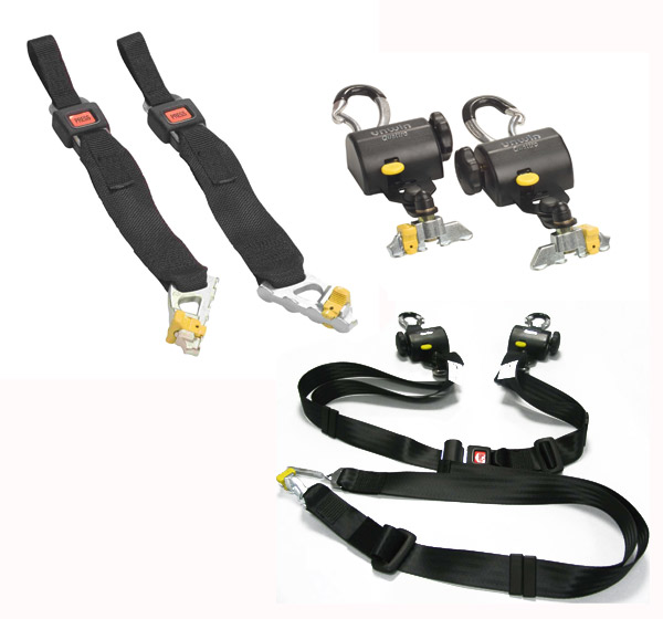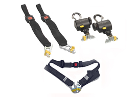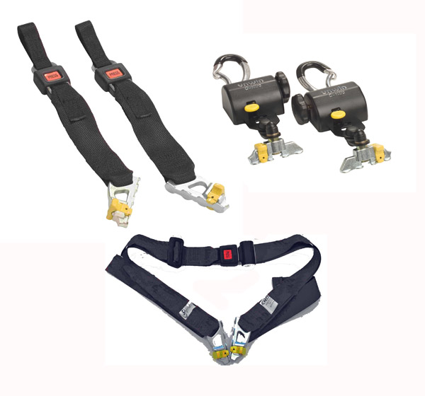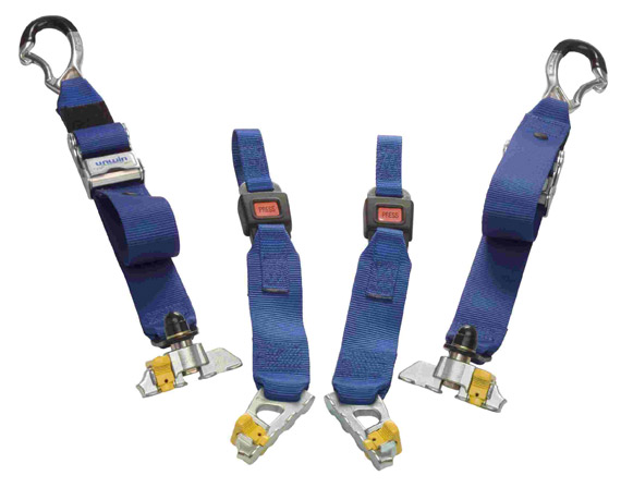 Kit ancoraggio a 4 punti per carrozzina composto di due cinture frontali fisse con sistema Belt e due cinture posteriori regolabili e tensionanti con sistema Karabiner kit testato ISO10542.