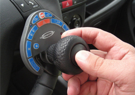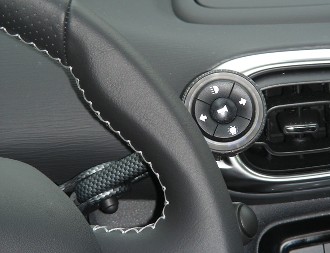 Il dispositivo applicato al volante consente, tramite una pulsantiera, di azionare i comandi luci, indicatori di direzione, tergicristalli, clacson, ecc… con estrema rapidità. Inoltre per facilitare la visione notturna è prevista l’illuminazione dei simboli attraverso un pulsante.