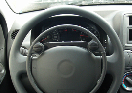 Facendo una leggera pressione in qualsiasi punto del cerchio posto sopra il volante originale si attiva l'avvisatore acustico, senza dover abbandonare il volante.