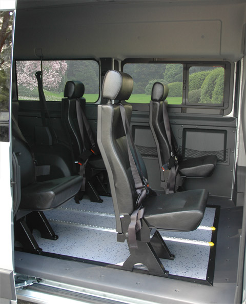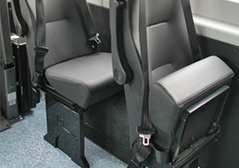 UNWIN EasiSit presenta una elevata flessibilità che si presta a soddisfare le molteplici esigenze di trasporto che si hanno effettuando dei servizi di trasporto differenti. EasiSit è nello stesso tempo un sedile per normodotati, un sedile specifico con cinture a doppia bretella ed una postazione per l'ancoraggio carrozzina, incluso il poggiatesta.