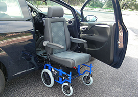 Sedile autovettura girevole con l'applicazione del carrello diviene una carrozzina ortopedica a tutti gli effetti. Evita di fare i trasferimenti carrozzina sedile e viceversa.