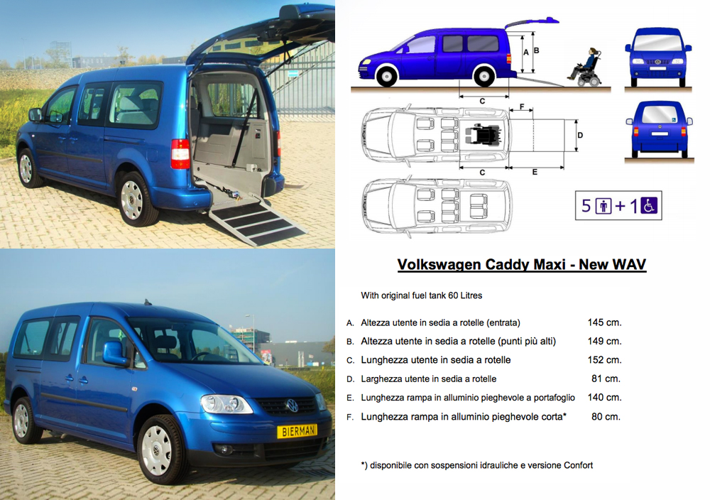 Il Caddy Volkswagen è uno dei veicoli più polifunzionali ed accessibili per sedia a rotelle del momento. L'interno multifunzionale rende questo un veicolo perfetto per visitare i vostri amici e parenti, o per godersi le vacanze.