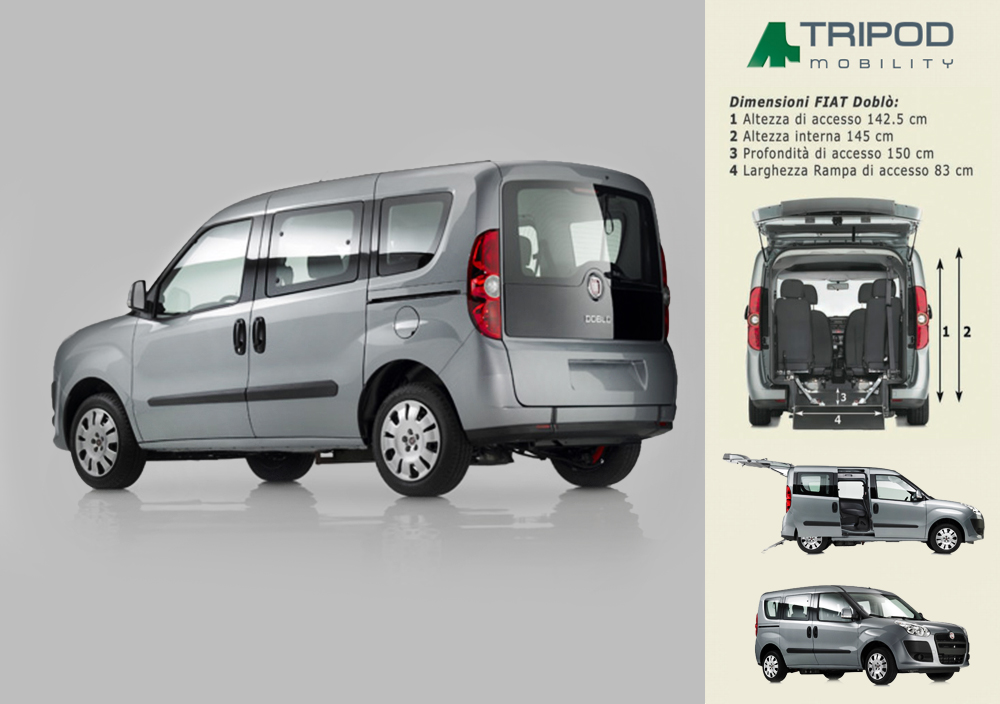Fiat Doblò è una vettura estremamente confortevole che Tripod ha adattato agli utenti in sedia a rotelle. L'auto è accessibile per quasi tutte le sedie a rotelle e scooter. Grazie alle sue ottime dimensioni, al design moderno ed al prezzo competitivo, il Fiat Doblò è un modello diffuso nella sua classe.
