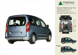 Peugeot Partner Tepee è una vettura estremamente confortevole che Tripod ha adattato agli utenti in sedia a rotelle. L'auto è accessibile per quasi tutte le sedie a rotelle e scooter. Grazie alle sue ottime dimensioni, al design moderno ed al prezzo competitivo, il Peugeot Partner Tepee è un modello diffuso nella sua classe.