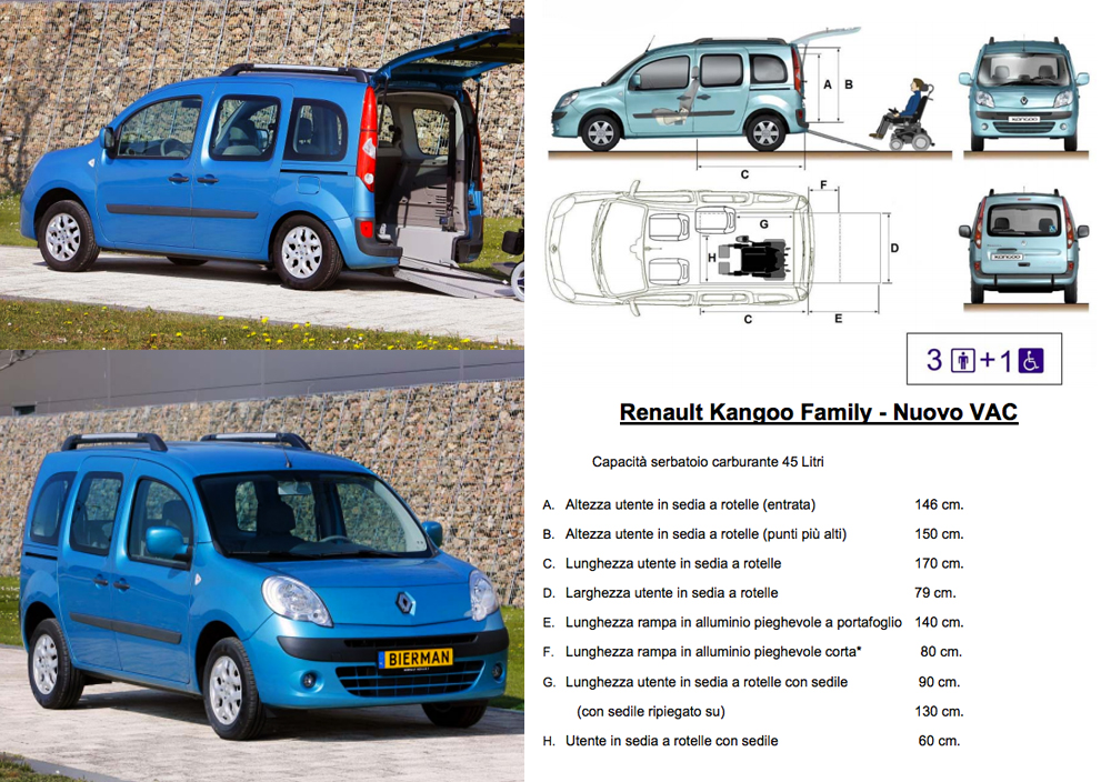 La modifica consiste nell'abbassamento del pianale posteriore per creare un vano di alloggiamento di cm 72x140 utile per la persona in carrozzina, la quale una volta all'interno va a posizionarsi parzialmente al posto centrale garantendogli un'ampia visibilità esterna e mantenendo comunque per i passeggeri un sedile su ogni lato.